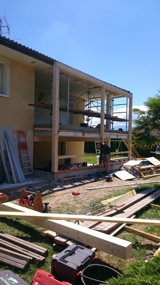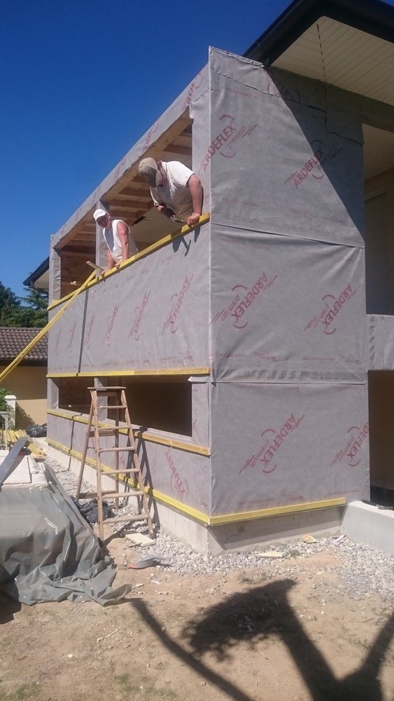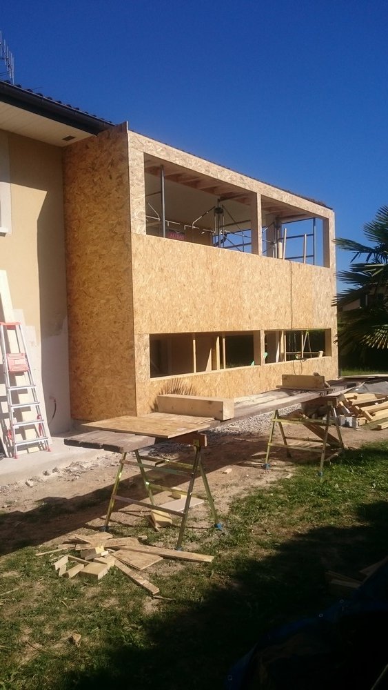 L’entreprise Passaquay a effectué un agrandissement - ossature bois sur cette maison avec un habillage bois.